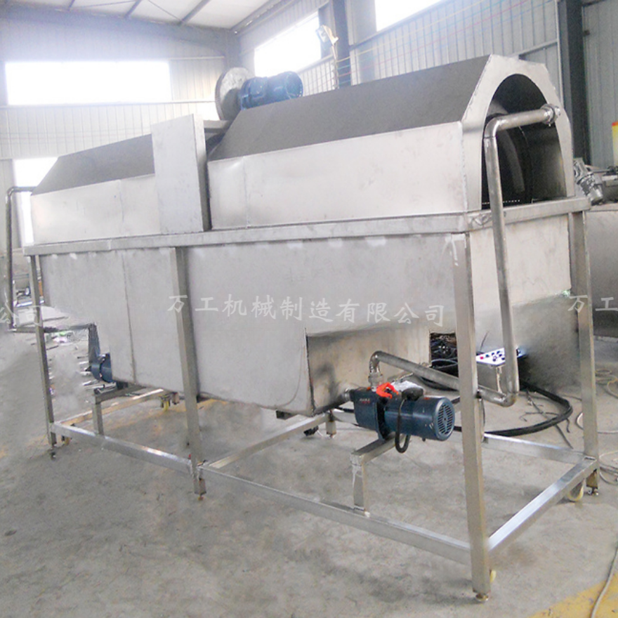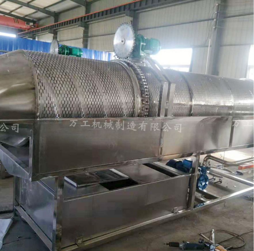 5.自動控溫,變頻調(diào)速,筒體分為兩部分,前半部采用加洗潔精處理方法,后半部采用清水自動清洗一遍。滾筒內(nèi)有毛刷,螺旋進(jìn)料出料,