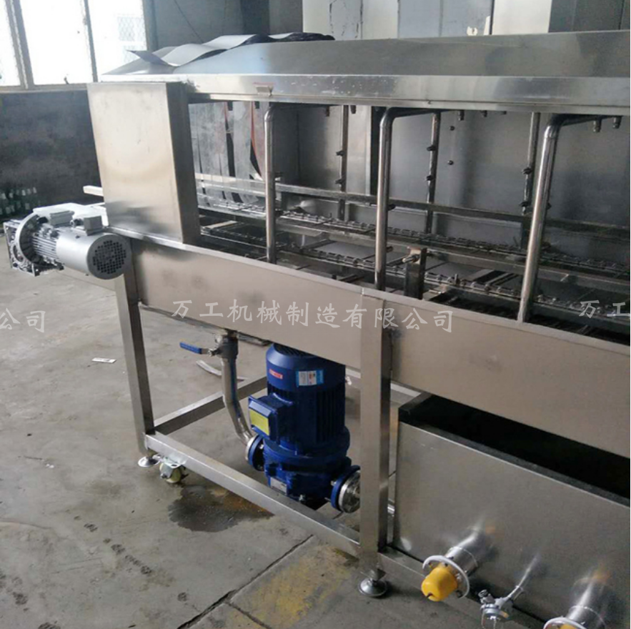 1、洗筐機(jī)主要由輸入、預(yù)洗、主清洗、漂洗、及輸出部分組成。使用標(biāo)準(zhǔn)組合式清洗系統(tǒng)非常靈活,可根據(jù)用戶的特殊要求進(jìn)行組合;洗筐機(jī)合理的水路設(shè)計(jì),達(dá)到節(jié)水高效,耗水量?jī)H為500L/小時(shí);預(yù)洗水箱、主清洗水箱設(shè)有蒸汽加熱及溫控裝置,以便調(diào)節(jié)水溫達(dá)到清洗效果;輸送裝置采用變頻調(diào)速,輸送鏈速0.7-7米/分可調(diào)整,以滿足不同條件下的清洗要求;