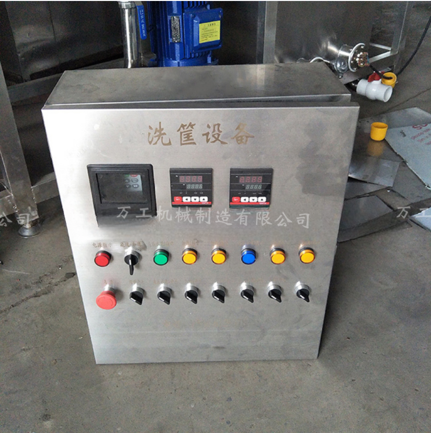 3、設(shè)備除電機(jī)外均采用SUS304不銹鋼制作。清洗分為三段一段為熱堿水,第二段為熱清水,第三段為自來水。三段噴淋水除第三段自來水外都有獨(dú)立循環(huán)過濾水箱,第三段自來水作為補(bǔ)充水回收至第二段水箱加熱使用過后部分污水被自動(dòng)排出。第二水箱內(nèi)設(shè)有蒸汽加熱管,溫度從常溫至60°C自由設(shè)定、自動(dòng)恒溫。