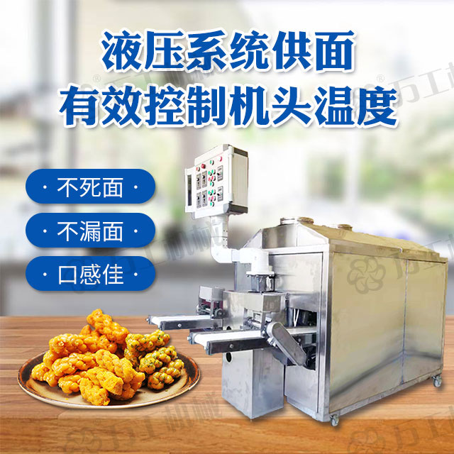 智能液壓四頭麻花機(jī),操作簡單,采用三調(diào)速結(jié)構(gòu),生產(chǎn)時將和好的面團(tuán)放入機(jī)器內(nèi),在靜壓推面器的作用下經(jīng)模具出條后,通過模具的旋轉(zhuǎn)自動上勁挽花,再由延時切段機(jī)自由控制麻花的長短,產(chǎn)品花形美觀漂亮,高效節(jié)能、安全衛(wèi)生、無噪音無污染,極大的提供高了生產(chǎn)效率和產(chǎn)品質(zhì)量。